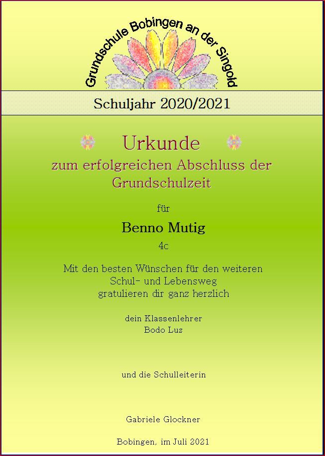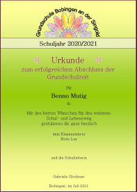Wie jedes Jahr gab es für die Kinder der vierten Klassen eine Urkunde zum Abschied aus der Grundschule mit den besten Wünschen für den weiteren Schul- und Lebensweg.