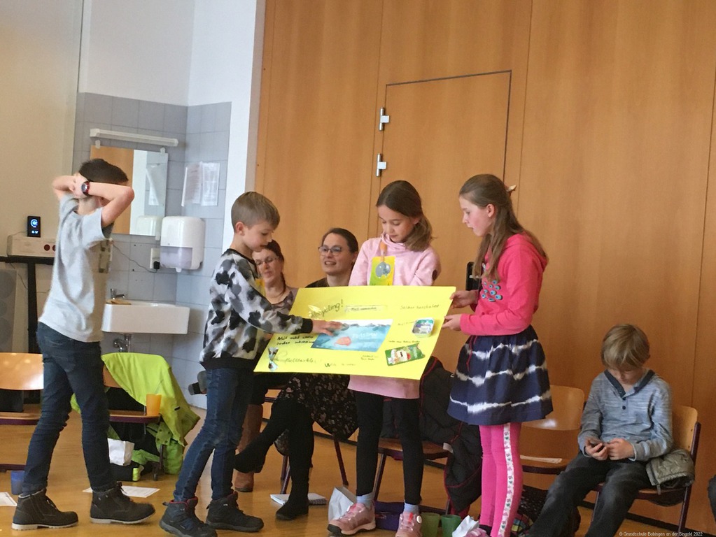 Die Kinder berieten sich in Gruppen, gestalteten Plakate und stellten ihre Gedanken einander vor.