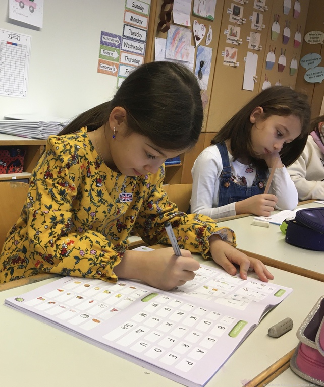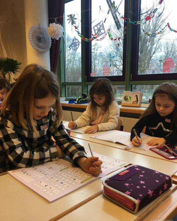 Wir bemühten uns redlich, unsere Fragen und Anliegen auf Englisch zu formulieren und auch die Mitschüler immer nur auf Englisch anzusprechen. “Can you help me, please?” “Can I have your ... please?” und andere Redewendungen waren überall zu hören. Dabei merkten wir plötzlich, wie viel wir schon auf Englisch sagen konnten, sogar so was Kompliziertes wie Wochenplan, HSU und Mathematik!