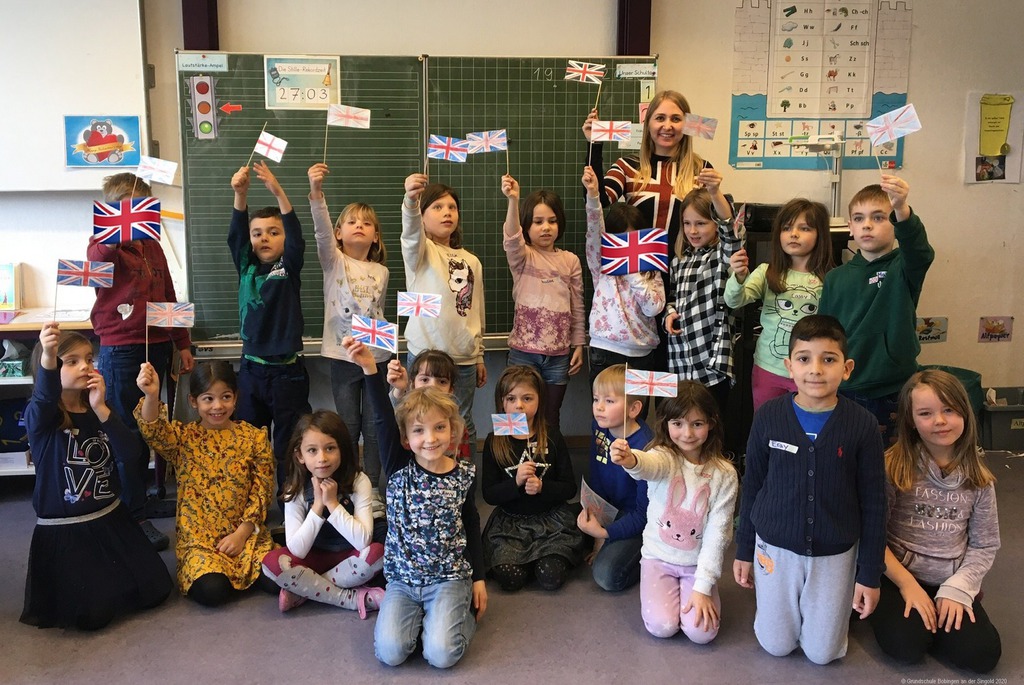 Das war das Motto unseres Englischtages kurz vor den Ferien. Nur noch Englisch reden für einen Tag, das war unser Ziel! Schon in der Früh begrüßten wir uns alle mit "Good morning": Eine britischen Flagge machte es jedem klar: Heute nur Englisch!