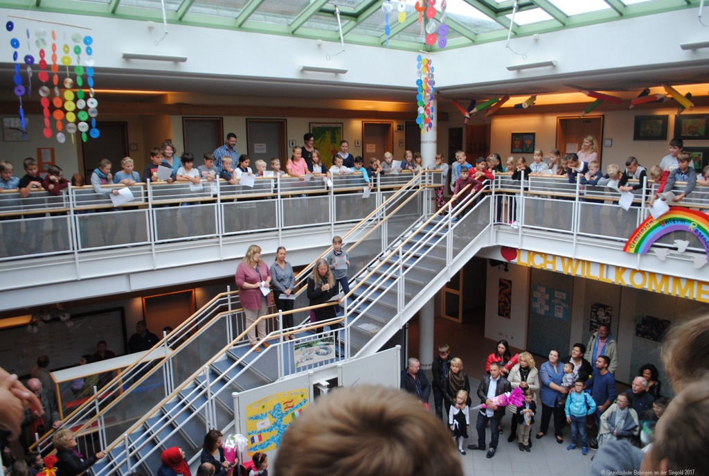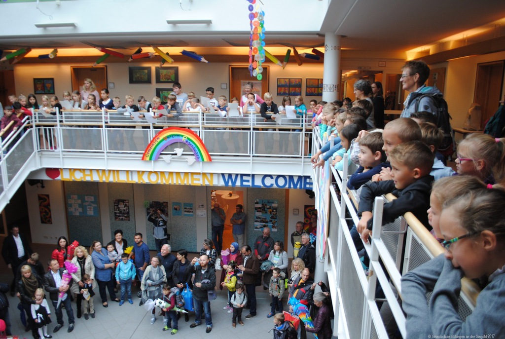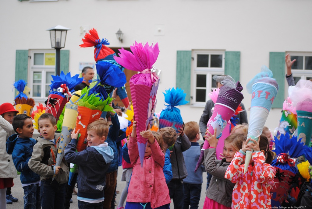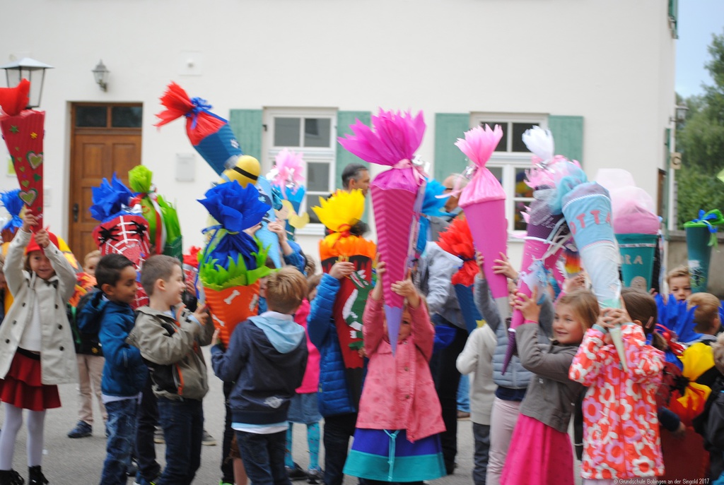 Nach dem Gottesdienst fand in den jeweiligen Schulen dann ganz echt der erste Schultag statt: "Wie wird wohl die Lehrerin sein, wie sieht das Klassenzimmer aus, neben wem werde ich sitzen, muss man evtl. schon was vorlesen ... " Trotz des kirchlichen Segens waren die Kinder merklich aufgeregt, als sie im Schulhaus von den "alten Hasen" (2. bis 4. Klässler) mit dem Lied "Alle Kinder lernen lesen ..." empfangen wurden. "Na, die werden's ja wissen", mag sich der eine oder die andere gedacht haben, und wenn man dem Lied glauben darf, schaffen das auch die "Indianer und Chinesen", und die haben es ja viel schwerer ...