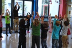 Kinder der Siedlungsschule tanzen Geometrie weiter