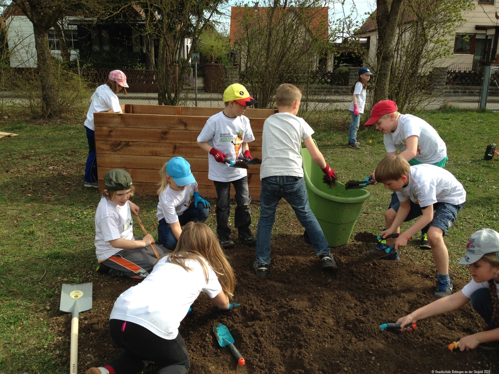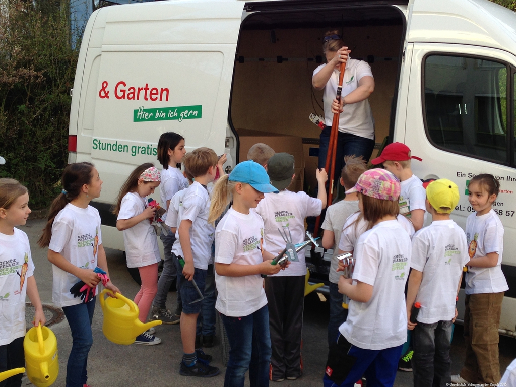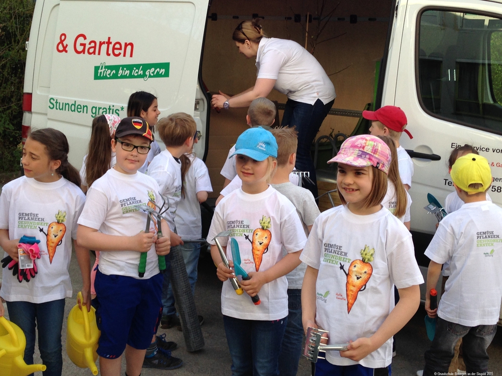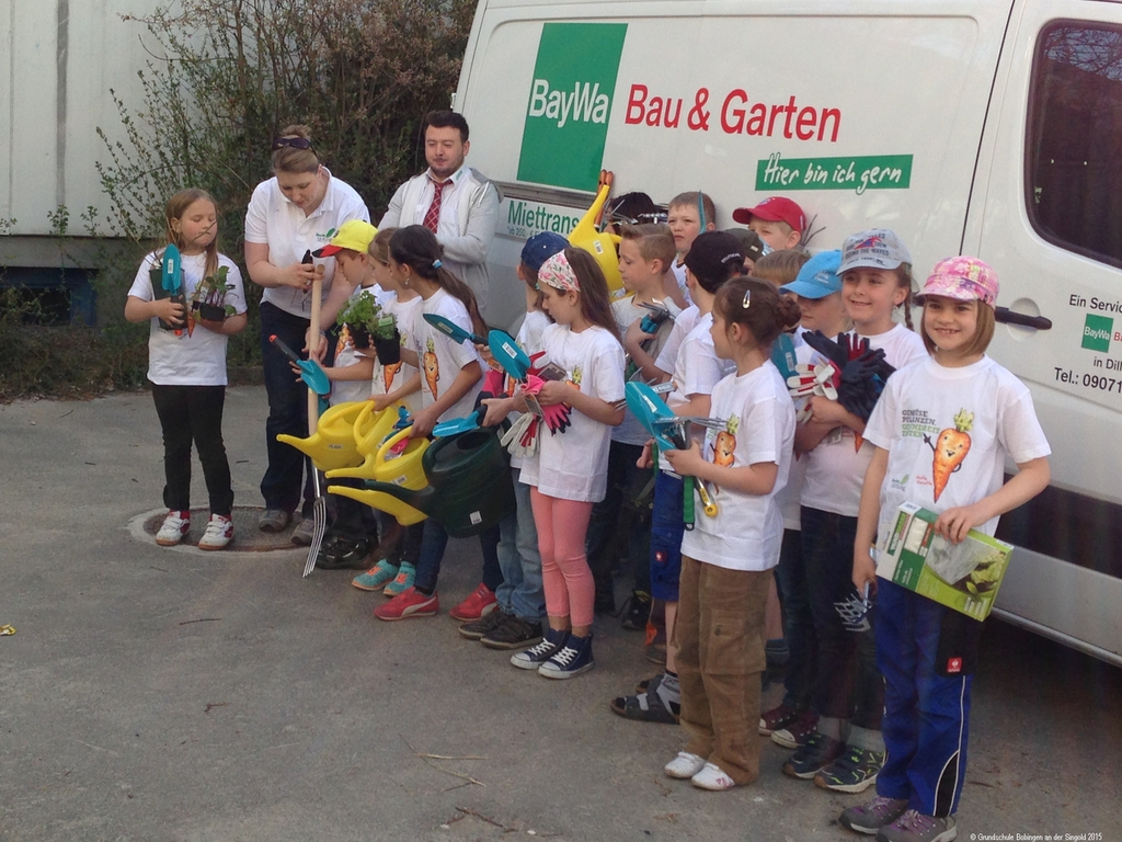 Unsere 3c-Lehrerin Frau Beyrle hatte sich bei der BayWa-Stiftung für das Projekt „Gemüse pflanzen - Gesundheit ernten“ beworben und den Zuschlag bekommen, u.a., weil das weitläufige Außengelände unserer Siedlungsschule ideale Voraussetzungen bietet.