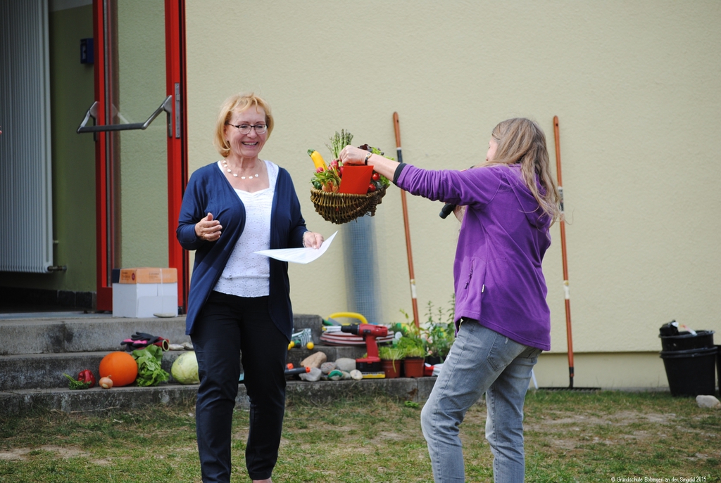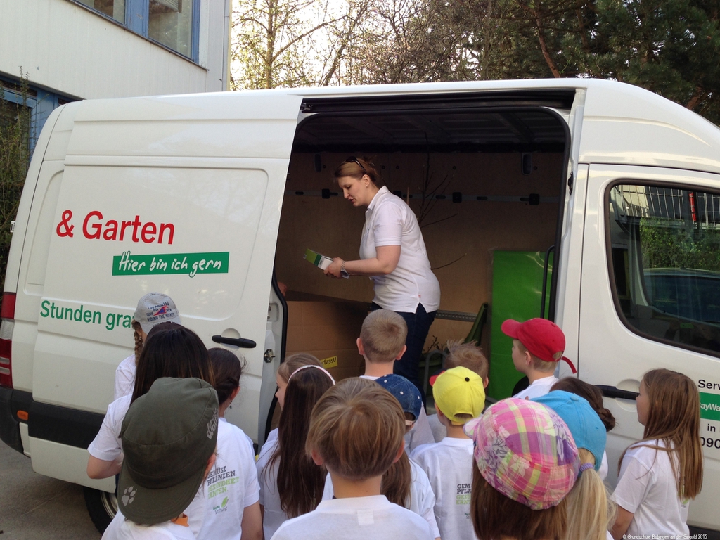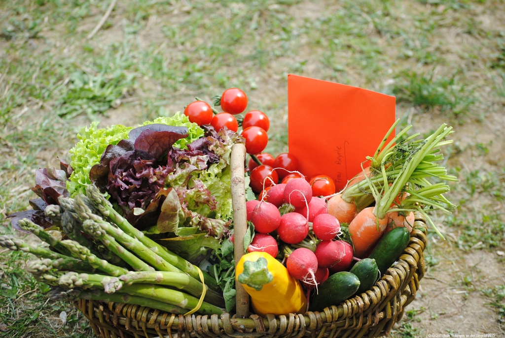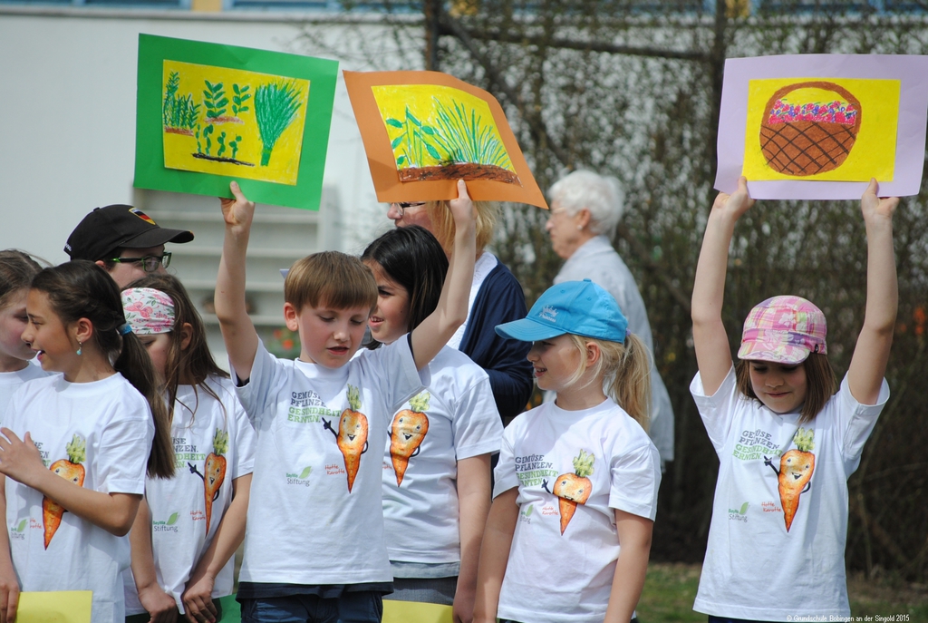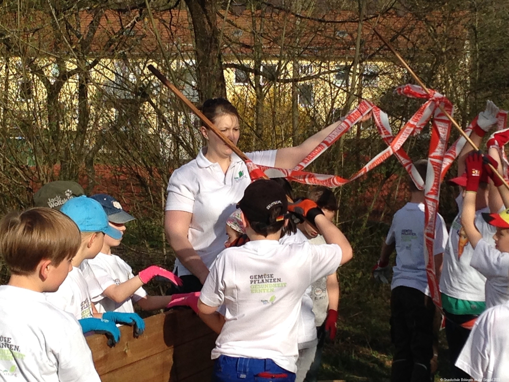 Unsere 3c-Lehrerin Frau Beyrle hatte sich bei der BayWa-Stiftung für das Projekt „Gemüse pflanzen - Gesundheit ernten“ beworben und den Zuschlag bekommen, u.a., weil das weitläufige Außengelände unserer Siedlungsschule ideale Voraussetzungen bietet.
