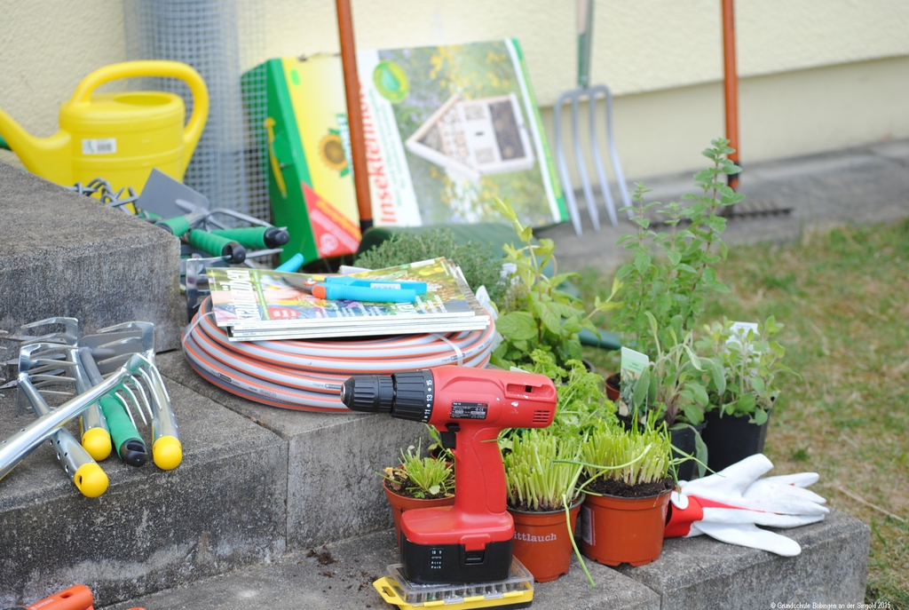 Ausgestattet mit allen notwendigen Werkzeugen machten wir uns mit großer Freude an den Aufbau eines Hochbeetes und eines Kompostes.