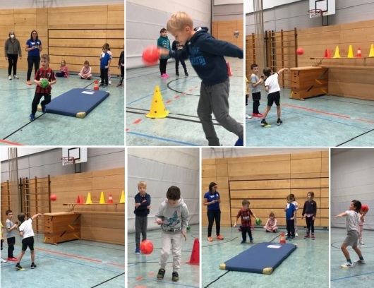 Gespannt und ausgerüstet mit ihrer "Hanniball"-Karte machten sich den gesamten Vormittag über die Klassen auf den Weg zur Sporthalle. Dort warteten schon die engagierten Trainerinnen des TSV Bobingen. Sie hatten mehrere Stationen rund um das Handballspiel aufgebaut. Es ging um Zielwerfen, Fangen des Balls, Koordinations- und Reaktionsübungen.