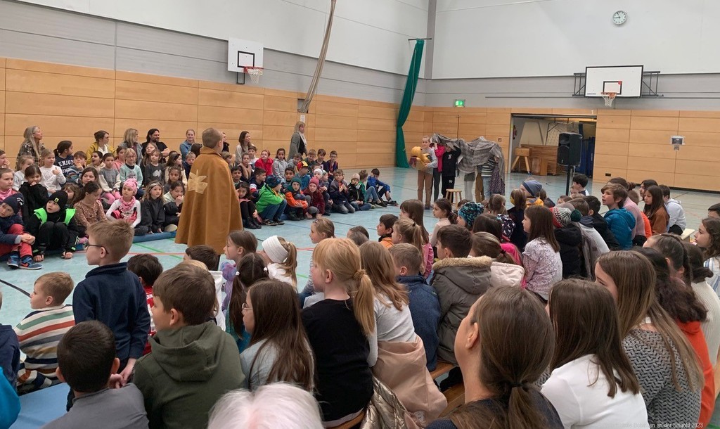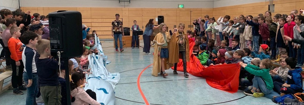 Alle Schüler (und Lehrer) die keine Hauptrolle abbekamen, wurden kurzerhand zum Sklavenchor und zum Feuer- bzw. Wassertuchträger ernannt. So war jeder Einzelne eingeladen, zu stauen und mitzumachen.