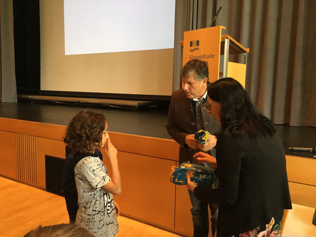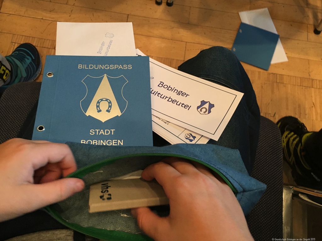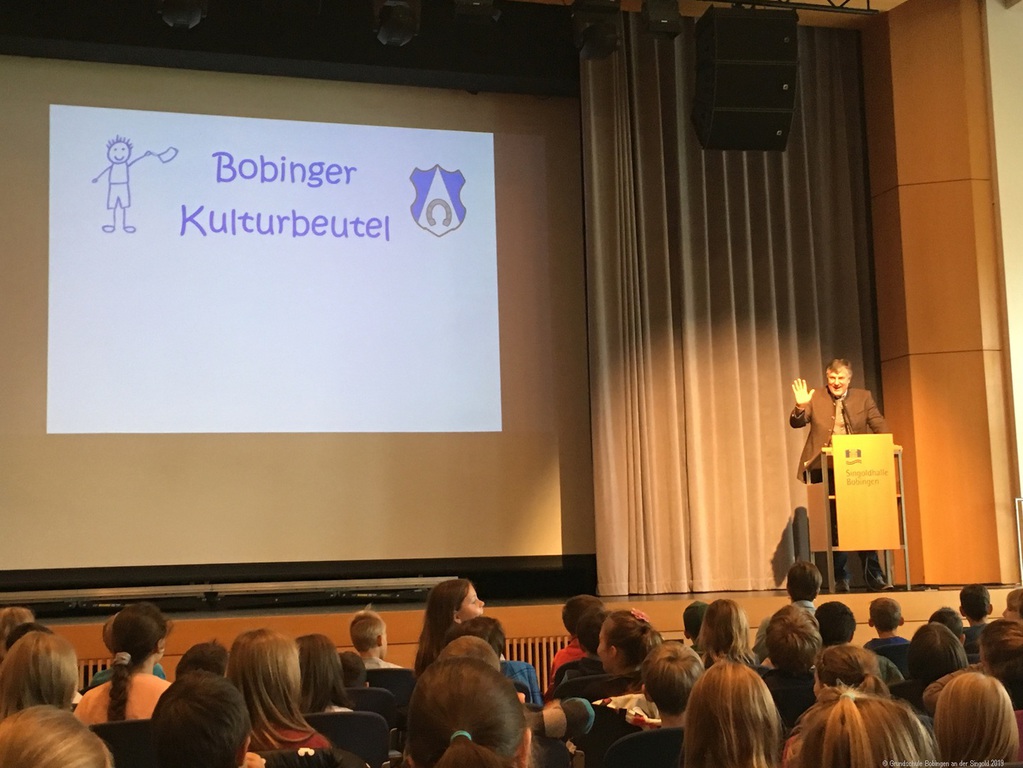 Mit dieser - etwas augenzwinkernden - Begrüßung löste er bei den Kindern der dritten Klassen aus den Bobinger Grundschulen zwar etwas Erstaunen, aber auch ein wenig Stolz aus: Denn immerhin bekamen die jungen Mitbürger/innen eine erste Grundausstattung, um das kulturelle Angebot in ihrer Stadt kennen zu lernen, z.B. Gutscheine für einen "Benimmkurs" der Volkshochschule, für die Reptilienfarm Bobingen, einem Backkurs für "Martinsgänsla" (= Bobingerisch für Martinsgans) ...