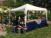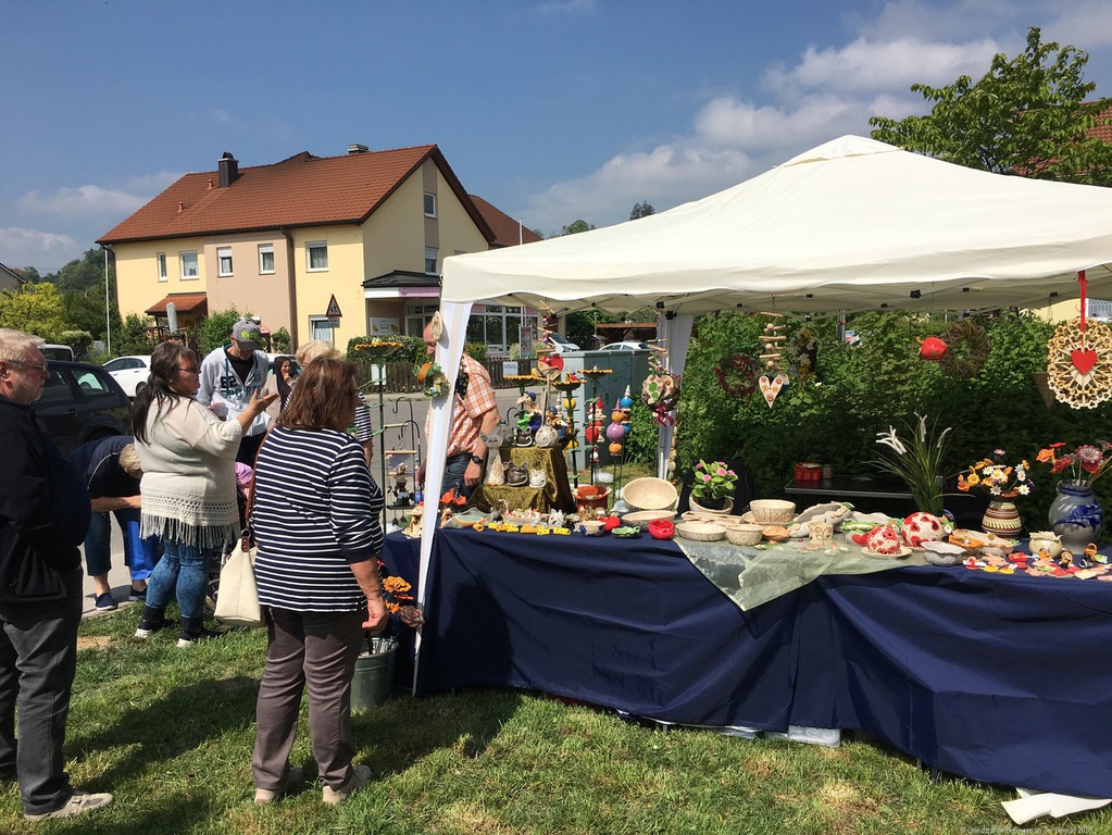 Einmal ganz anders als sonst sah es vor der Siedlungsschule aus: Weiße Zelte, bunter Gartenschmuck, Unikate aus Holz und vieles mehr präsentierte sich bei strahlendem Sonnenschein: Das Quartiersmanagement Bobingen und der Siedlerverein hatten einen Kunstmarkt organisiert, und viele aus der Siedlung (und wohl auch von etwas weiter her) ließen sich ein solches Novum nicht entgehen.