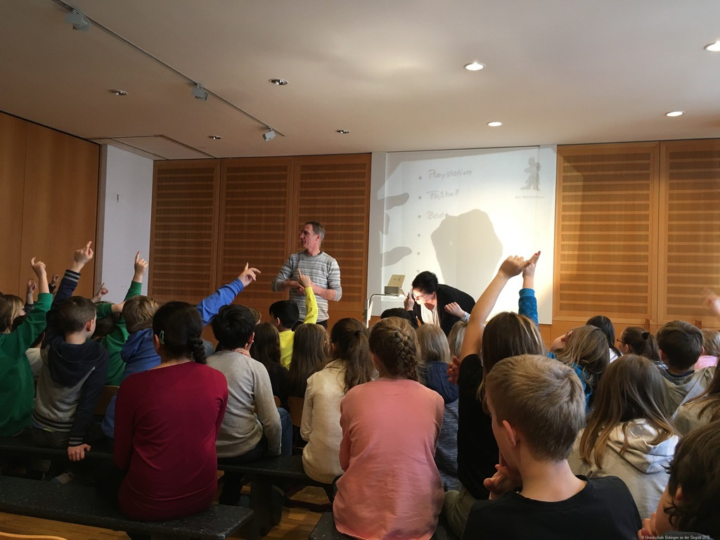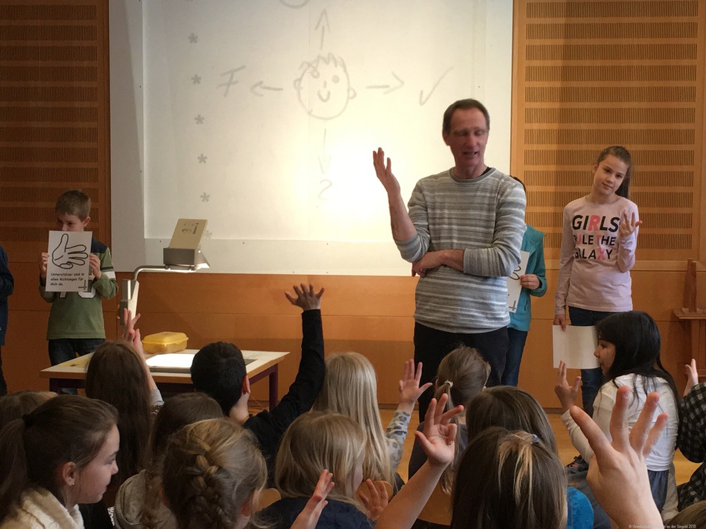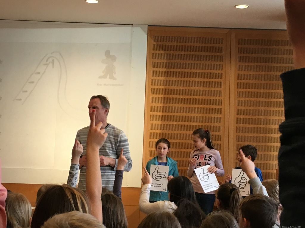 Mit einer lustigen Geschichte drumherum kann man sich plötzlich die unmöglichsten Sachen merken! Diese und viele andere Merktechniken zeigte der Merkmeister Ralf Hofmann den Kindern aller Klassenstufen - mit vielen verblüffenden Aha-Erlebnissen. Wer kann sich schon zehn kunterbunte Begriffe (z.B. Geschenkideen) auf Anhieb merken? Merkmeister Ralf Hofmann positioniert sie (natürlich nur gedacht!) am ganzen Körper: Die Discokugel auf dem Kopf, den Gutschein in der Nase, die Legobausteine im Mund u.s.w. |