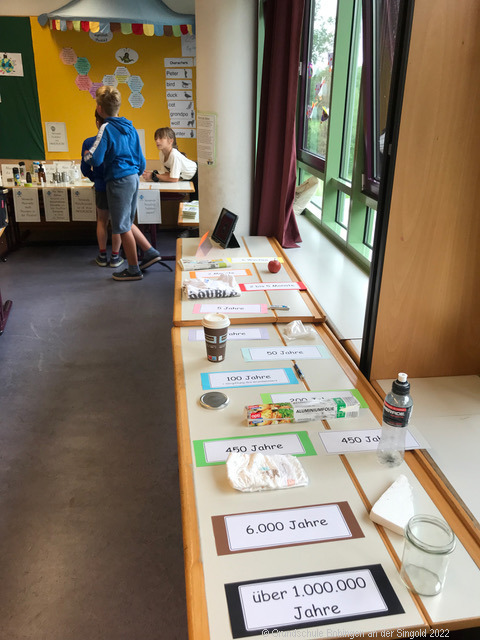 Die 3. Klasse machte sich Gedanken zu den vielen Bereichen des Umweltschutzes. Was ist eigentlich Plastik und was passiert damit in der Natur? Das Vermeiden von Müll, besonders von Plastikverpackungen, wurde zum zentralen Thema. Beim Einkauf im „Kleinen Laden“ in Straßberg erfuhren wir, dass auf Verpackungen in den meisten Fällen verzichtet werden kann.