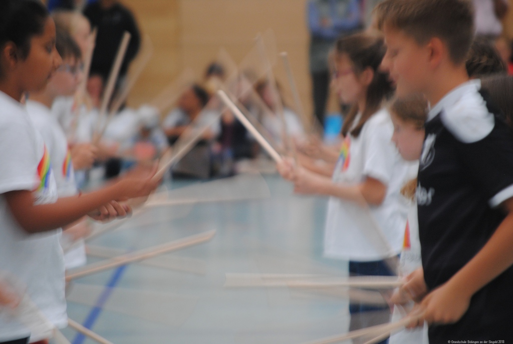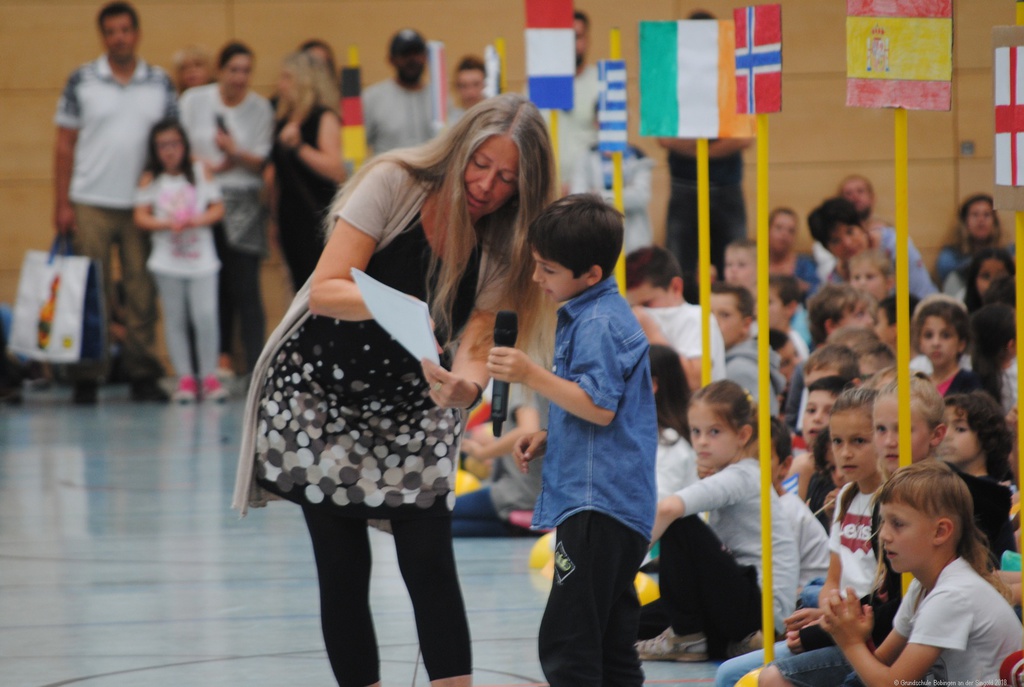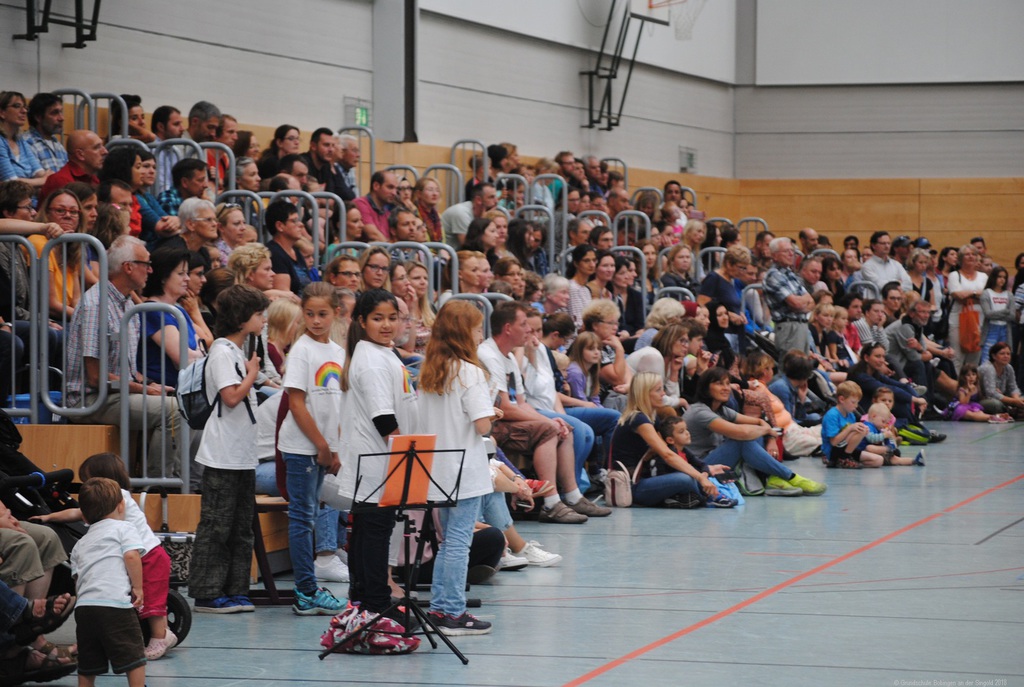 Die Kinder der Elefantenrunde (die Schülervertretung an unserer Schule) übernahmen nun das Mikrofon und hießen ihrerseits die Gäste willkommen, nicht ohne sich bei all denen zu bedanken, die zum Zustandekommen dieses Festes beigetragen haben. Und derer sind es viele: Kinder und Lehrer, die in den letzten Wochen ein tolles Programm vorbereitet haben, der Elternbeirat, der zusammen mit vielen Eltern ein sagenhaftes Salatbuffet beim Grill und ein verführerisches Kuchenangebot organisiert hatte und viele helfende Hände, seien es die der Hausmeister oder der Praktikanten oder, oder, oder ...