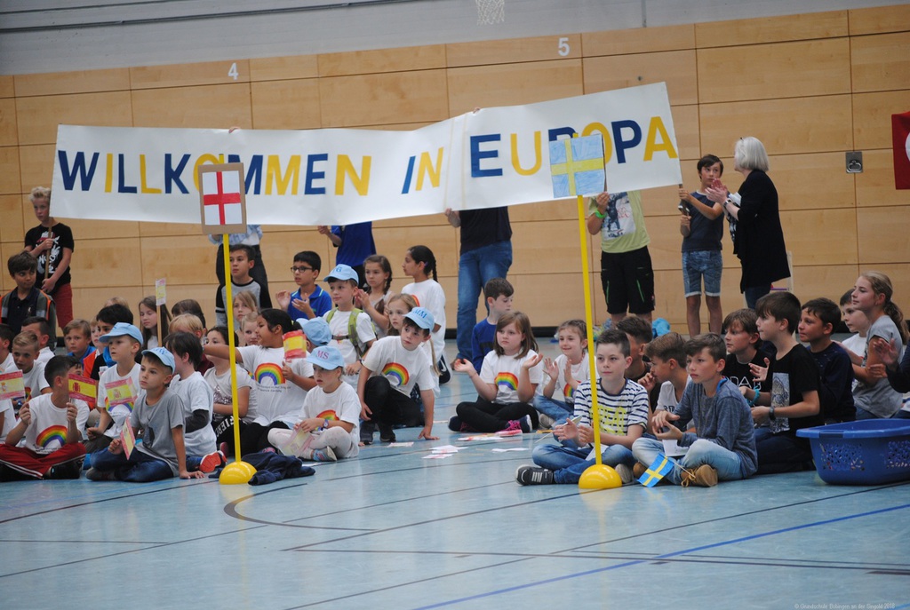 Mit diesen Worten eröffnete unsere Schulleiterin Frau Glockner das Schulfest 2018, das - nicht ganz zufällig - unter dem Motto "Willkommen in Europa" stand, ging doch in diesem Schuljahr das dreijährige Erasmus-Projekt zu Ende.