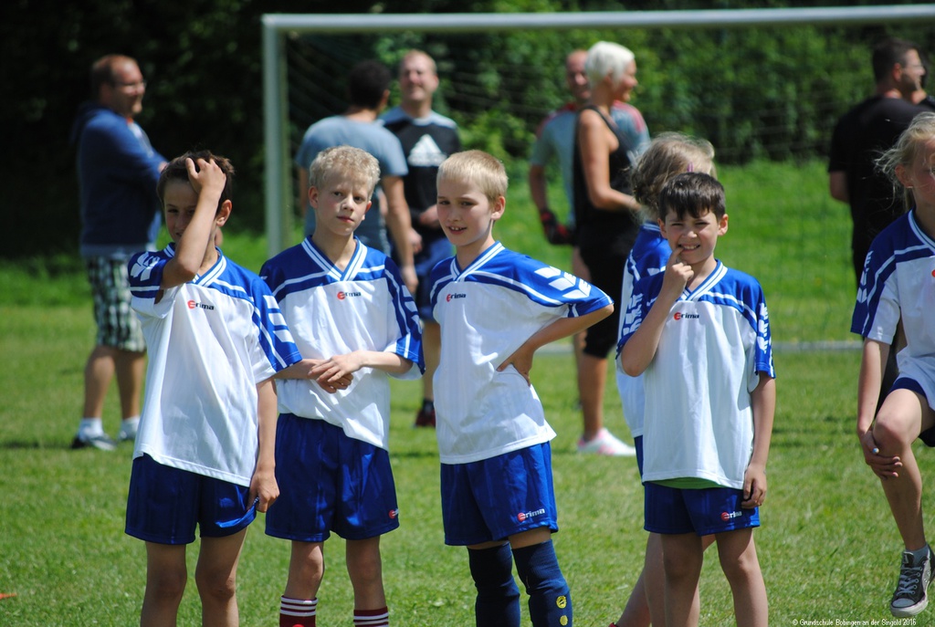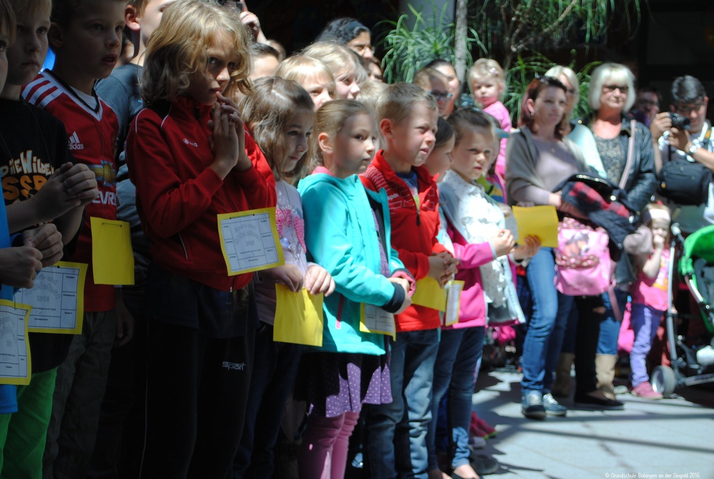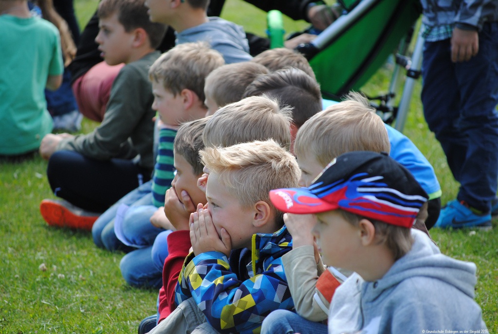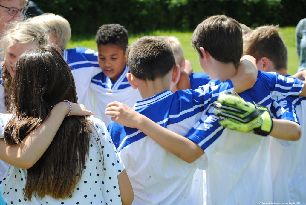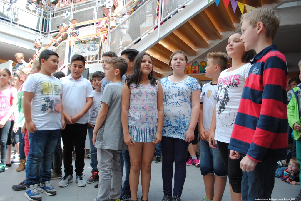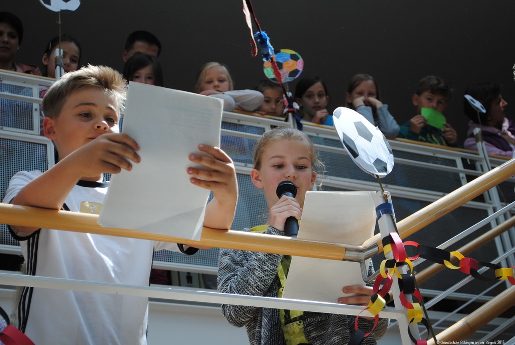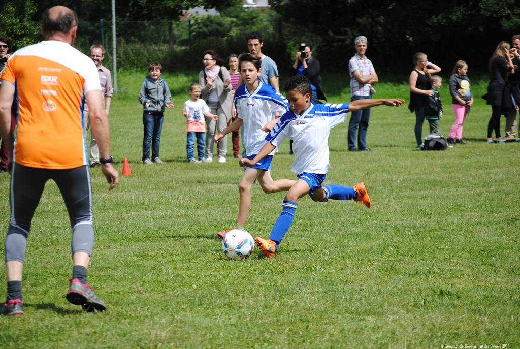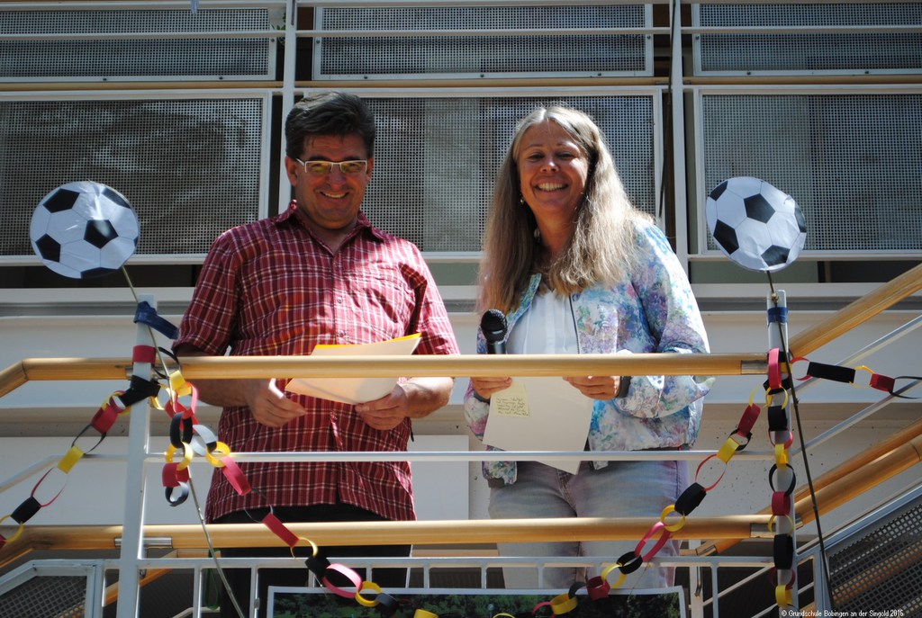 Nach einer kurzen Begrüßung und einem musikalischen "Ein Hoch auf uns" in der Aula spielte die Schulauswahl (Klasse 4a) gegen eine mutige Erwachsenen-Mann/Frauenschaft ein spannendes Fußballspiel. Ein kurzer aber heftiger Schauer beendete sowohl das Match beim Stand von beinahe 4:4 für die "Großen" als auch den regen Grill- und Café-Betrieb im Pausenhof.