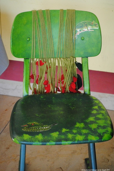 Was macht man, wenn sich im Keller haufenweise ausgemusterte Holz-Schul-Stühle stapeln, die zum Wegwerfen viel zu schade sind?