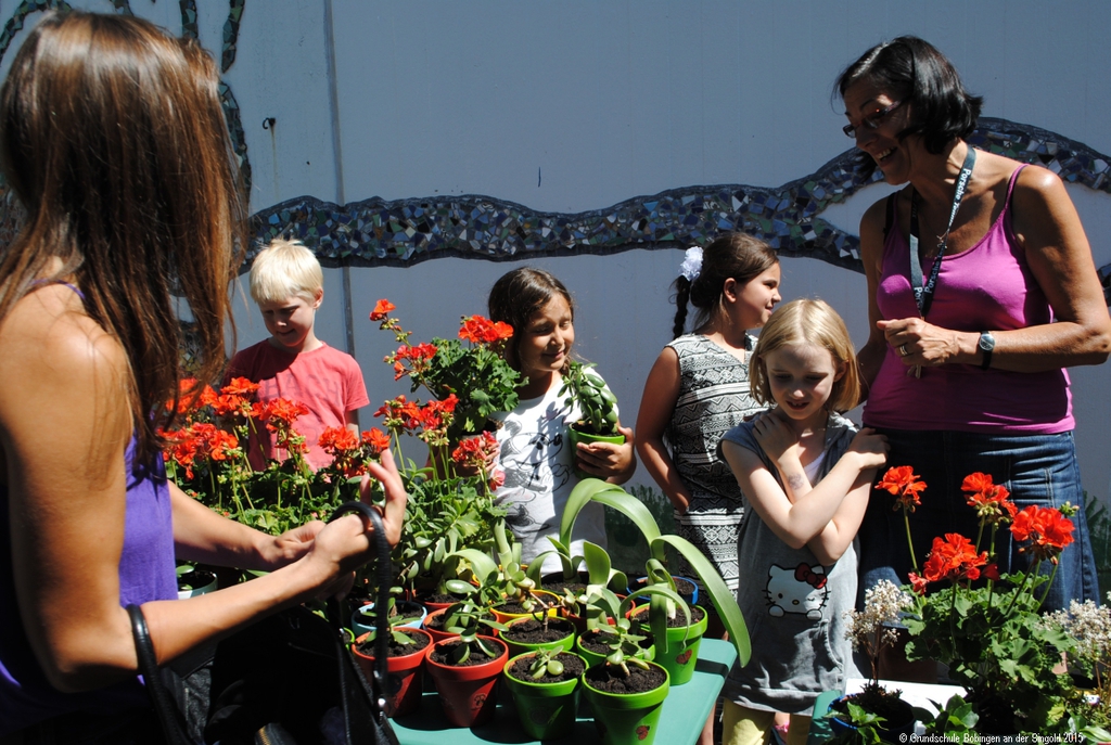 Sie organisiert ein Sommerfest mit lustigen Spielen und leckerem Essen, findet einen Blumen-Sponsor und macht eine Stuhl-Auktion. Am Ende waren es über tausend Euro, und zusammen mit einem evtl. Zuschuss des Elternbeirats und einiger Sponsoren sollte es für die Anschaffung des Sonnensegels reichen!