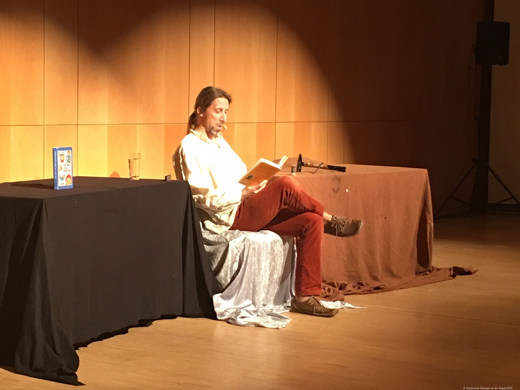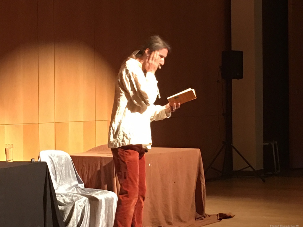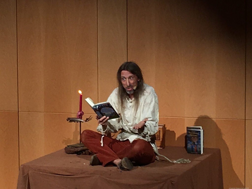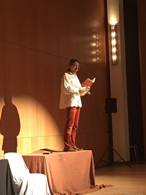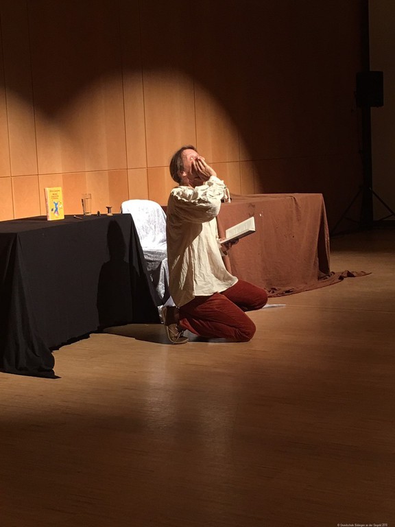 Nach einer eindrucksvollen Einführung auf Althochdeutsch und einer sehr anschaulichen Erklärung zur Herkunft der Buchstaben, las Rainer Rudloff eine Stunde lang Stellen aus drei Klassikern vor, die sich allesamt um das Thema „Zwergenmut“ drehten. Dabei entführte er die Zuhörer wortgewaltig und mit viel Körpereinsatz in die jeweiligen Szenarien ... W. M.