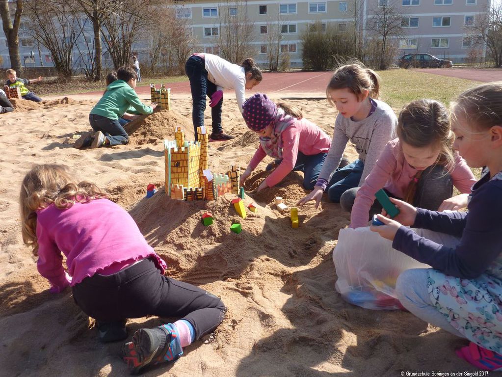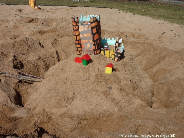 ist jetzt auch in der Siedlung zu bewundern. Die Kinder der 2c haben sich über das berühmte alte Gemäuer schlau gemacht und es im Sporthof nachgebaut ...