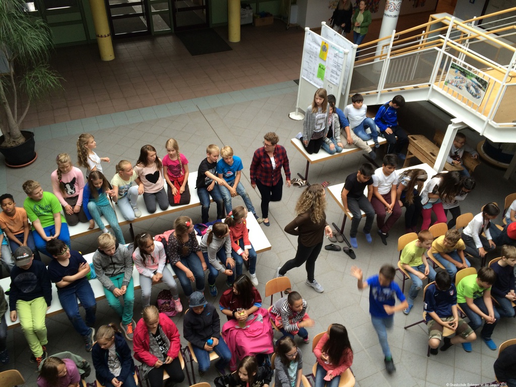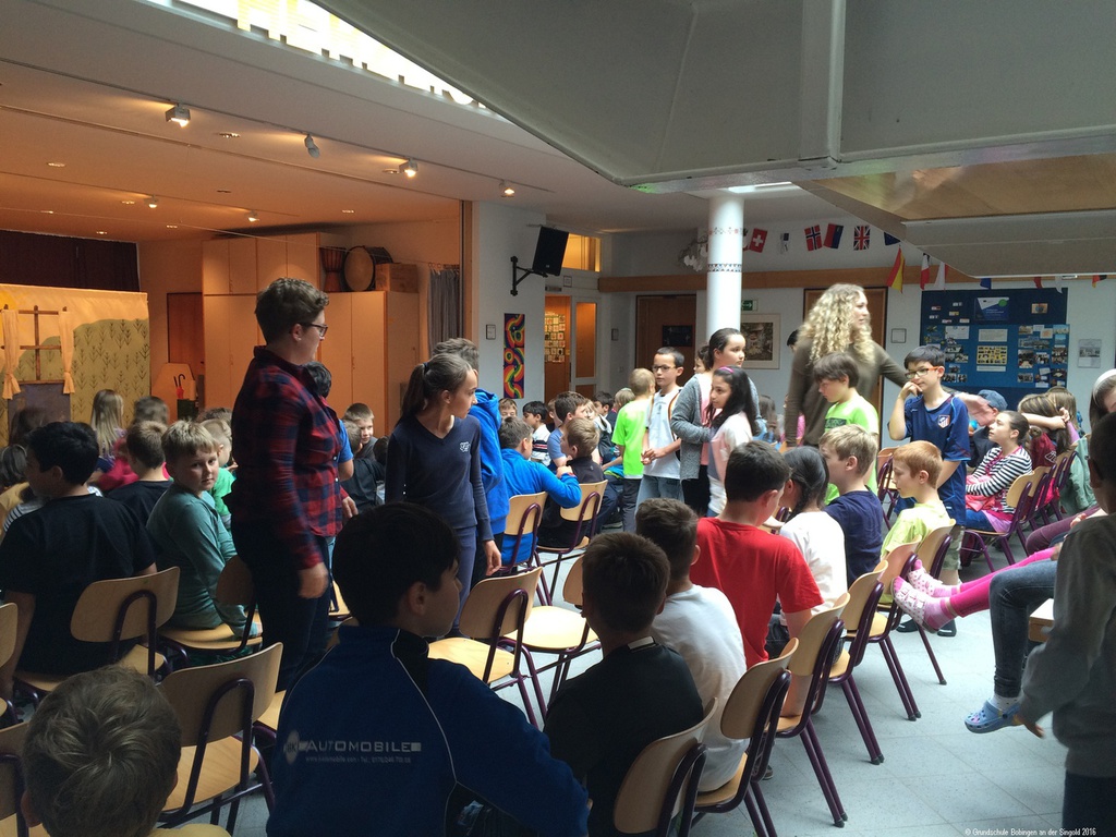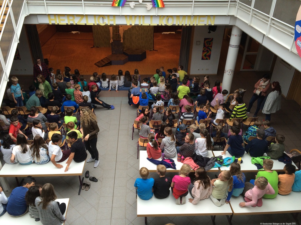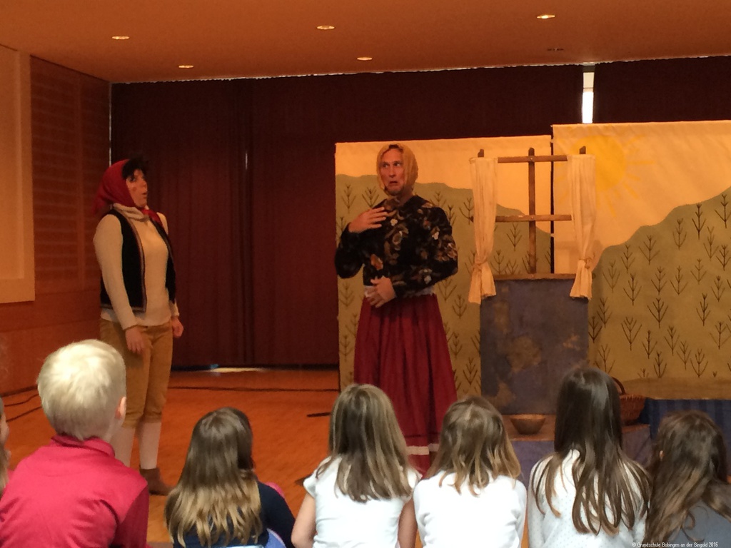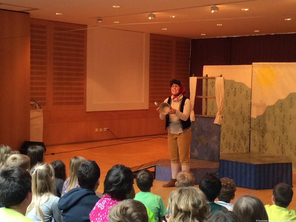 Es war für alle was dabei: Ob Englisch-Anfänger oder "Fortgeschrittene", ob erste oder vierte Klasse - alle verstanden sofort, worum es in den beiden Theaterstücken "Spot the Dog" (1. und 2. Klassen) und "Jack and the Beanstalk" (3. und 4. Klassen) ging, obwohl die beiden Schauspieler ausschließlich Englisch sprachen. Ein lebendes Englischbuch, sozusagen!